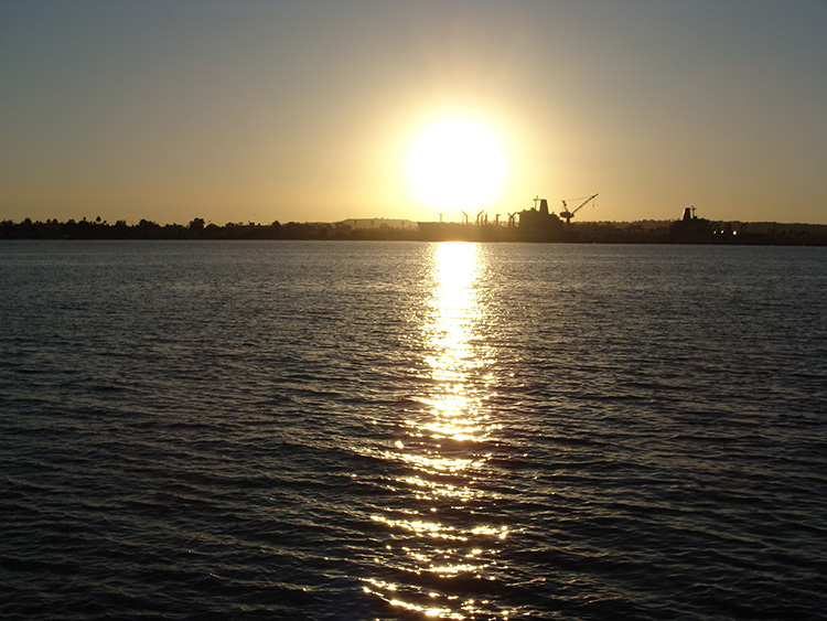 미드웨이 박물관 갑판 위에서 바라본 웅장한 바다 풍경.